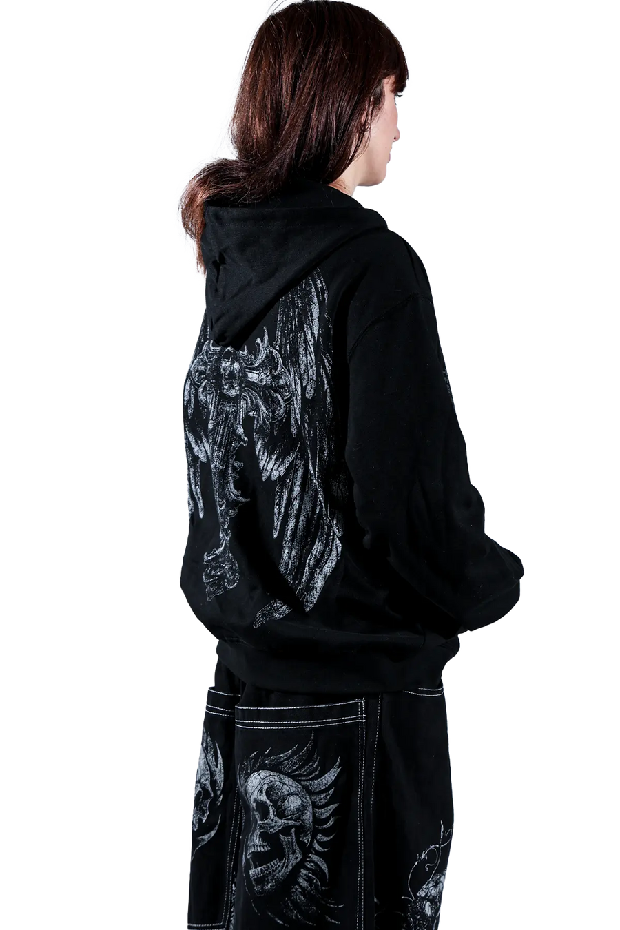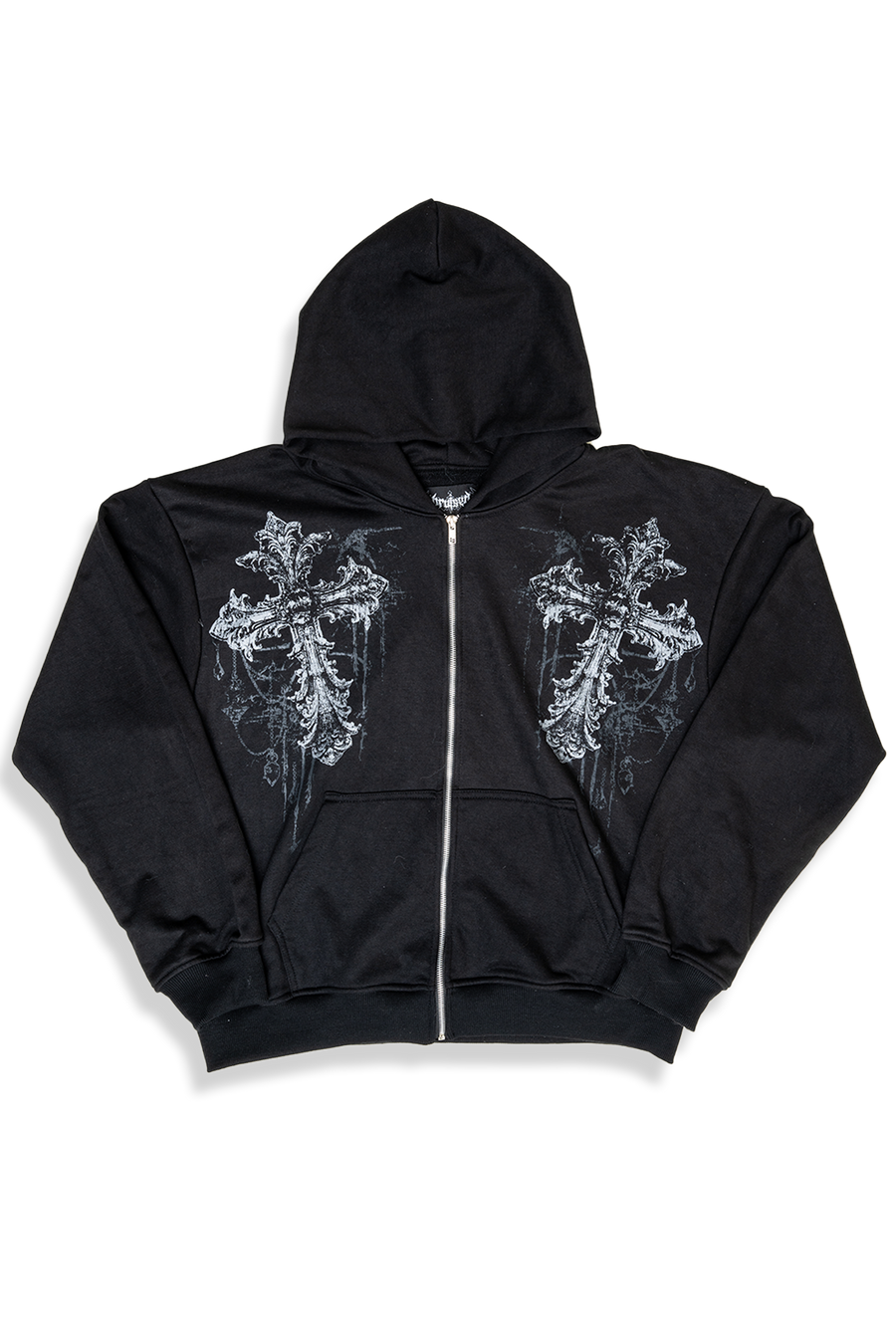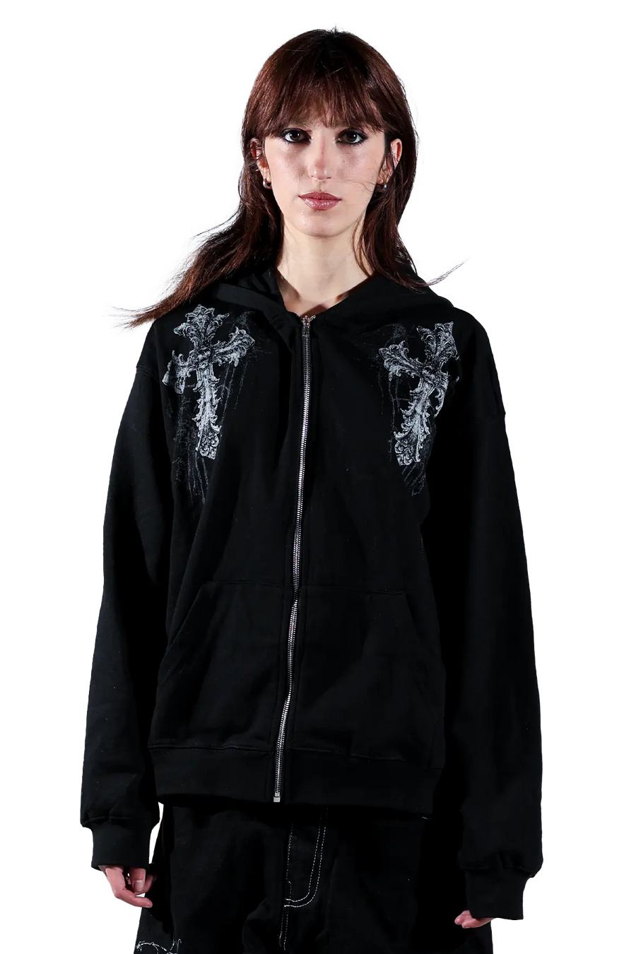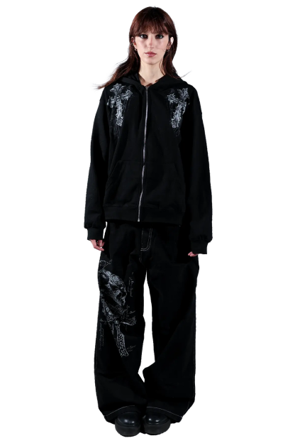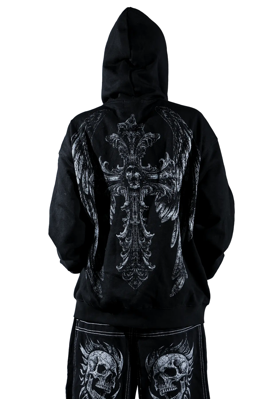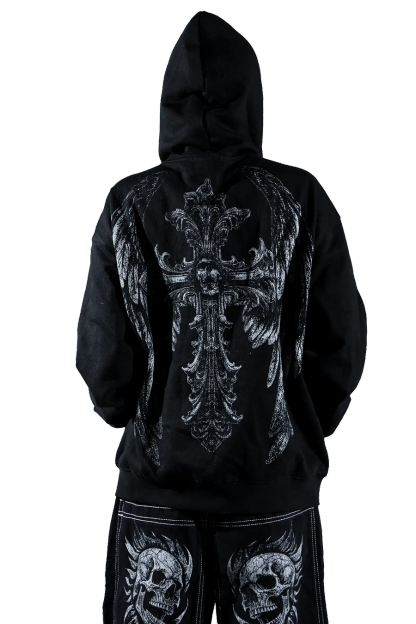 Elevate your style with this gothic hoodie featuring a striking cross graphic. The detailed print on both the front and back adds a bold, edgy touch to your look. Crafted from soft, high-quality fabric, this hoodie ensures comfort and durability.