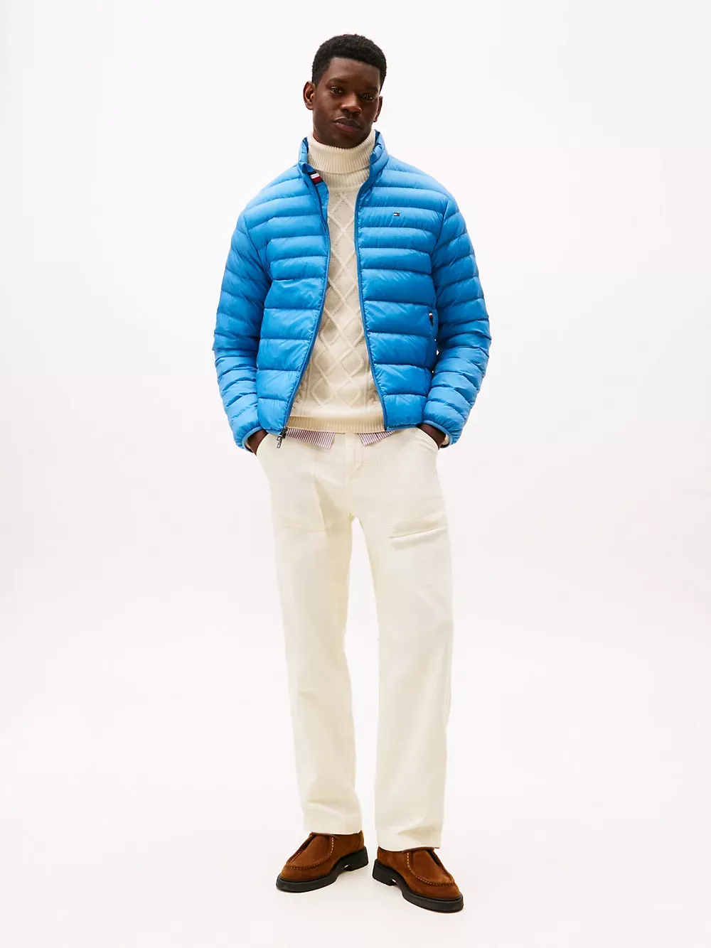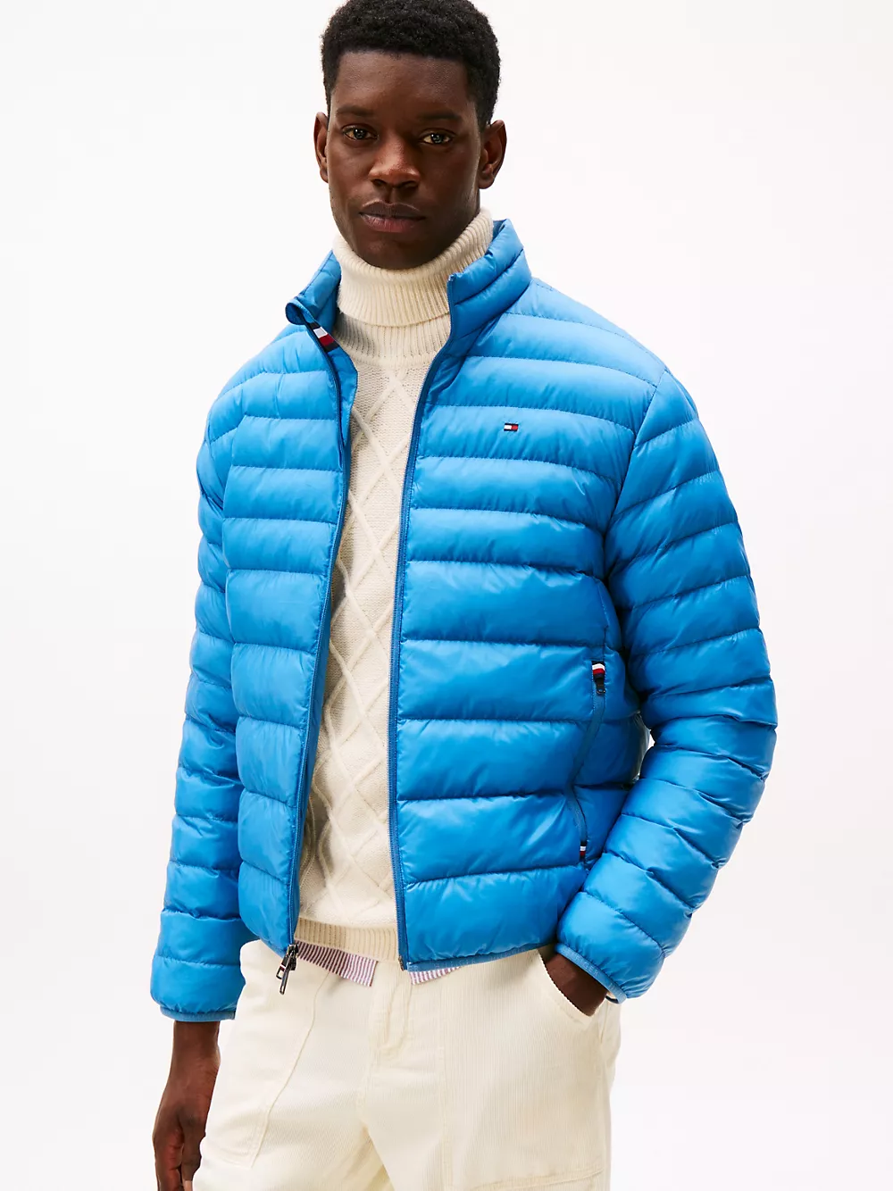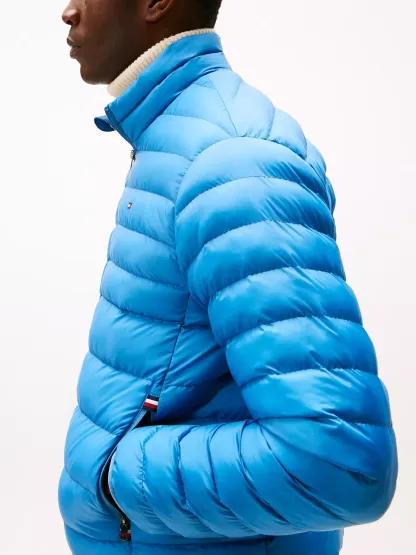 Tommy Hilfiger men's jacket. Ideal for travel, this puffer jacket folds down to a fraction of its size and easily stores in the internal security zip pocket. Made from lightweight fabric and toasty insulation, it's ready for whatever the weather report is dishing out.