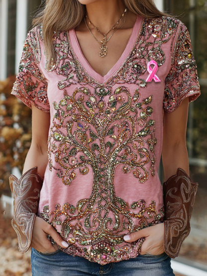 Women's Tree Of Life Breast Cancer Ribbon Casual T-shirt